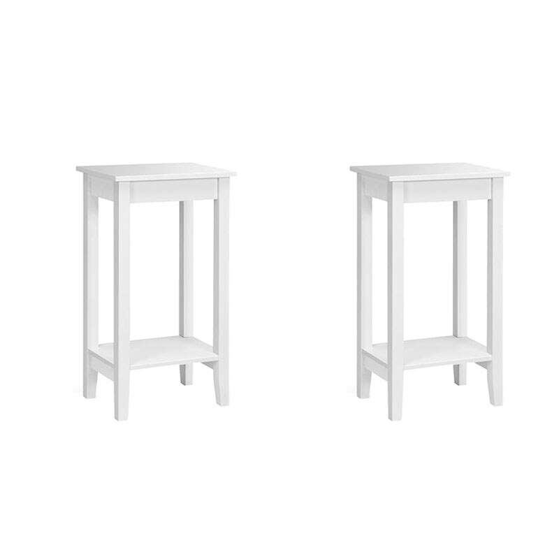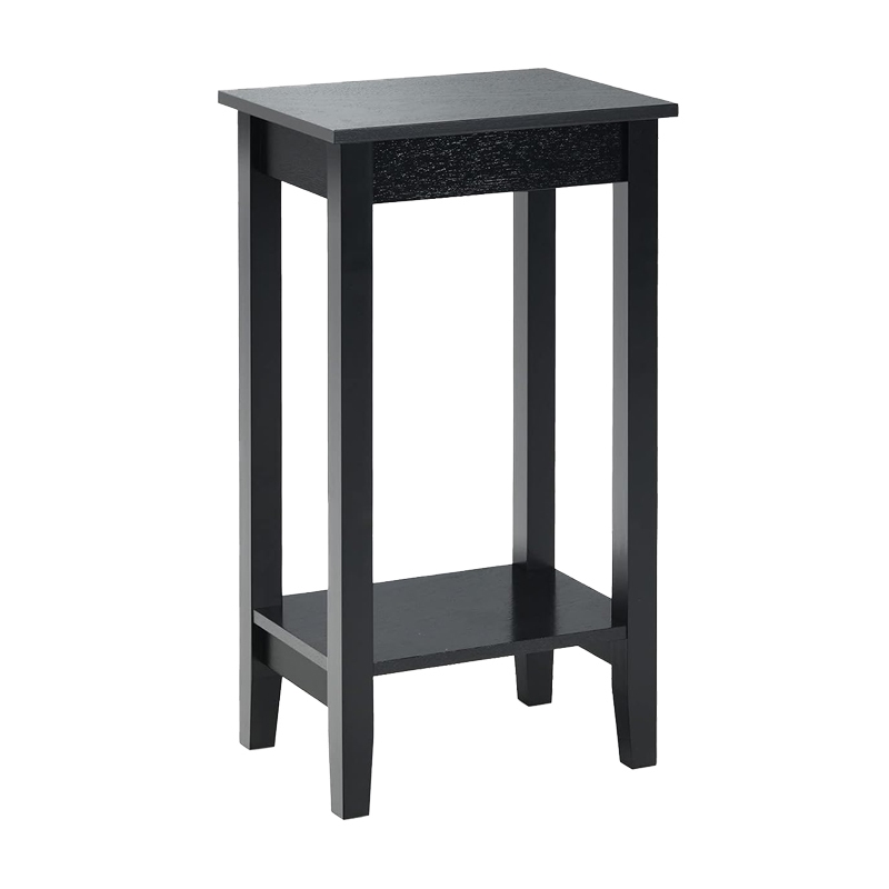 COSTWAY Beistelltisch mit Ablage, 2-stöckiger hoher Sofatisch mit 4 Massivholzbeinen, rechteckiger Aufbewahrungstisch
