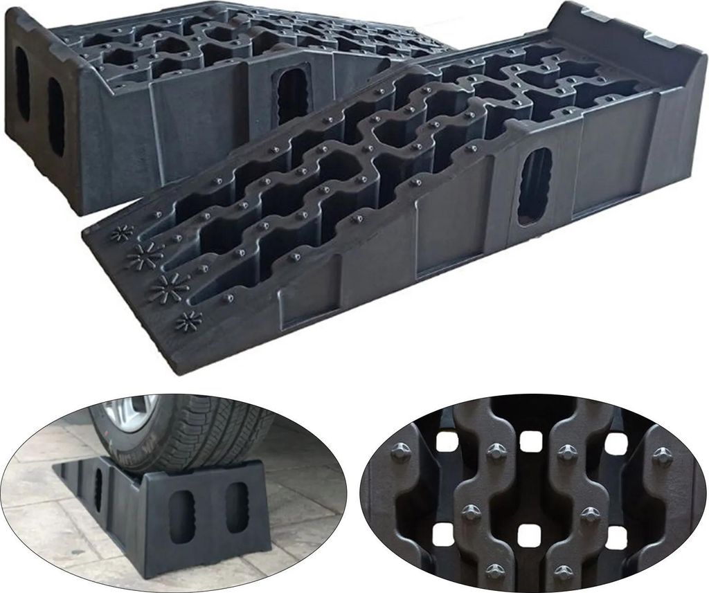 2x Auffahrrampen Kunststoff Traglast 3 t Ausgleichskeil extra flach für PKW Wohnwagen Wohnmobil