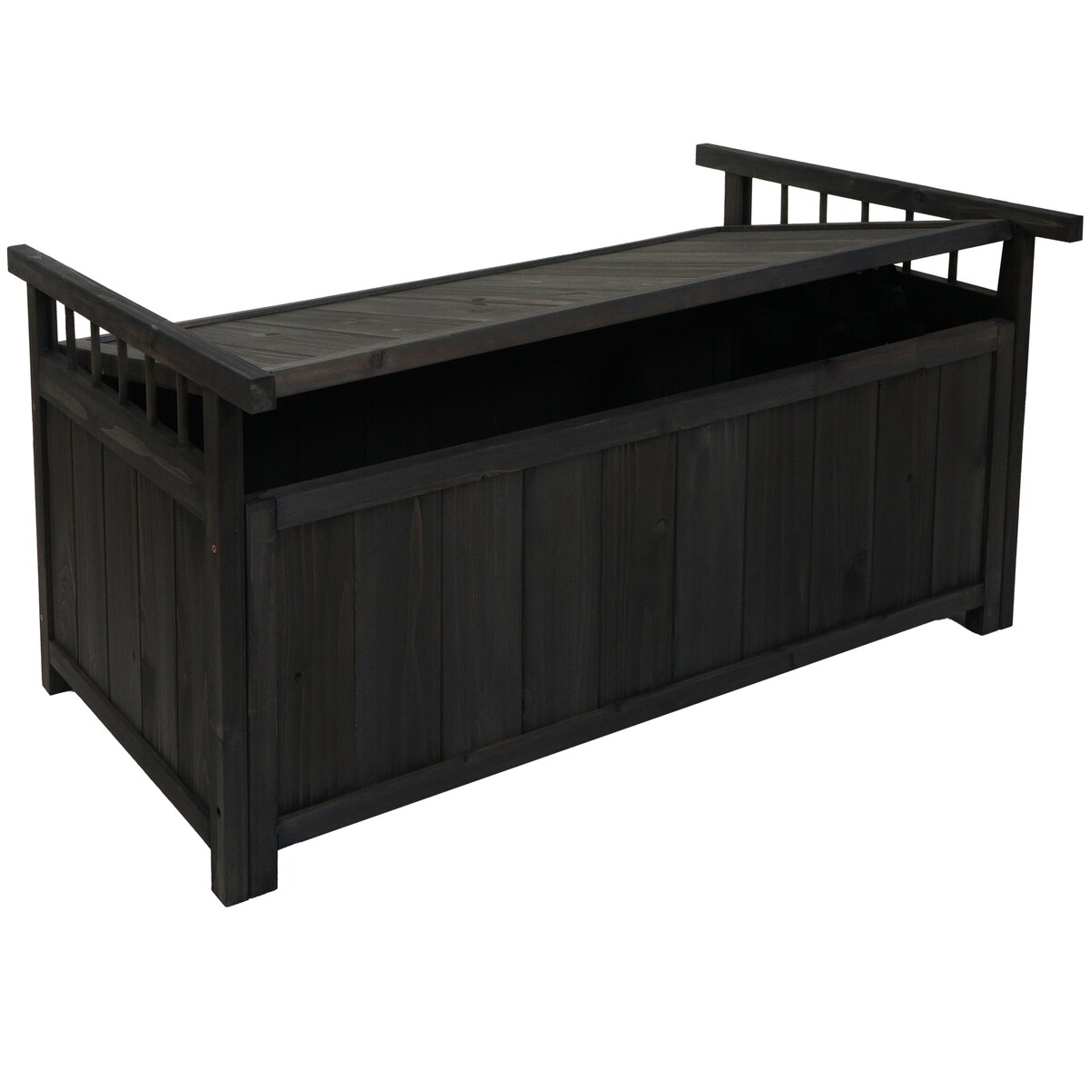 STOLMAK Gartenbox aus Holz 166 l 80x52x40 cm Schwarz Massivholz Kiefer Auflagenbox Kissenbox Holztruhe Aufbewahrungsbox Gartenmöbel