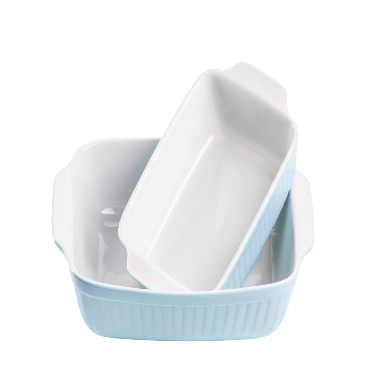 2 Stück Auflaufform Keramik, 23 x 13 cm, Rechteckige Kleine Auflaufform mit Griff, Für Lasagne, Tiramisu & Auflauf