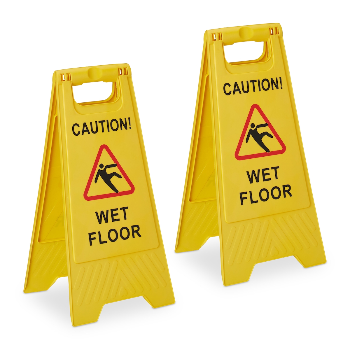 Relaxdays Rutschgefahr Aufsteller, "Caution Wet Floor", 2er Set, klappbar, beidseitig beschriftet, Kunststoff, gelb