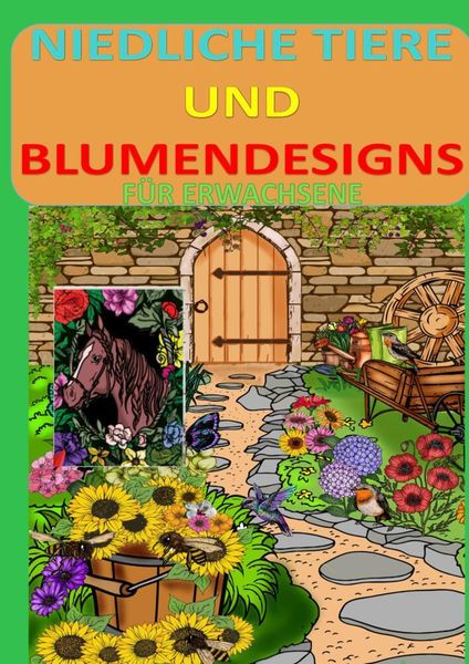 Niedliche Tiere und Blumendesigns: Blumen und Garten Ausmalbuch mit 37 Motiven zum Ausmalen für Entspannung und Stressabbau MALBUCH FÜR ERWACHSENE,
