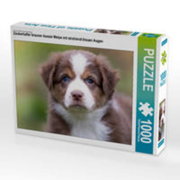 CALVENDO Puzzle Zauberhafter brauner Aussie Welpe mit strahlend blauen Augen | 1000 Teile Lege-Größe 64x48cm Foto-Puzzle für glückliche Stunden