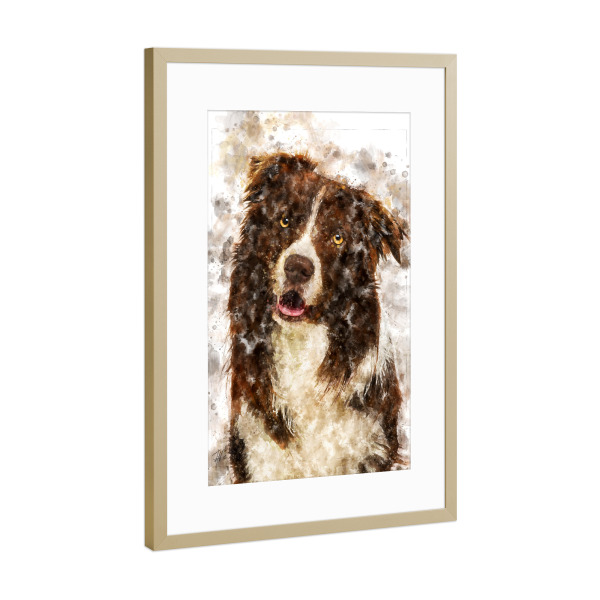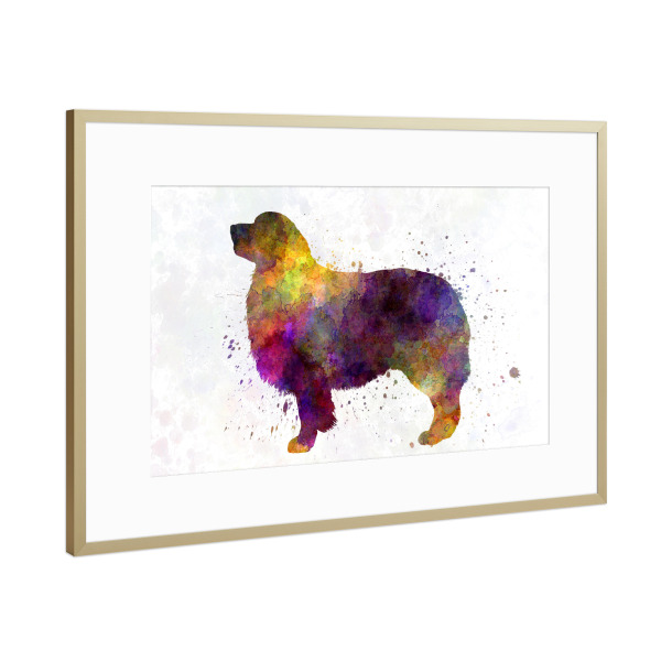 Poster mit Rahmen Gold "Australian Shepherd in watercolor" artboxONE - Tiere