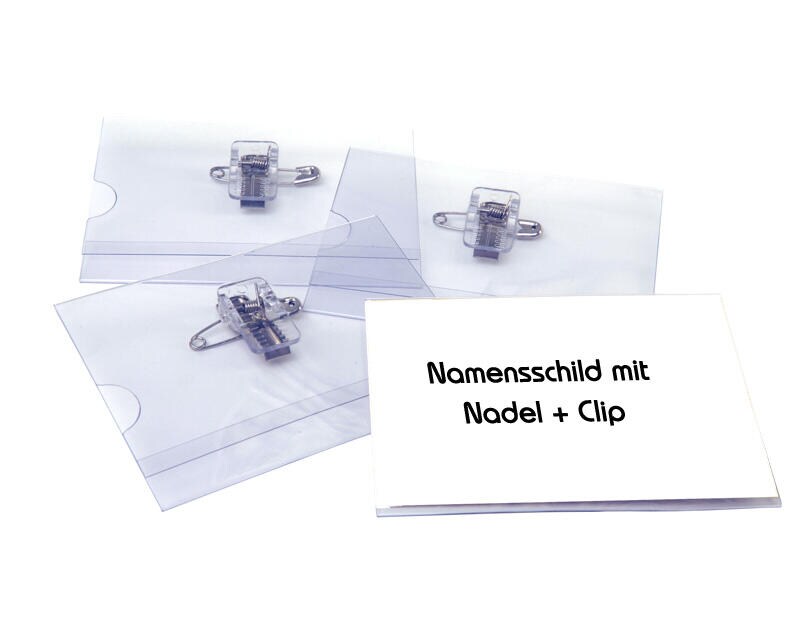 50x Pavo Ausweishalter Namensschildhalter mit Kombi-Clip + Nadel 40x75mm