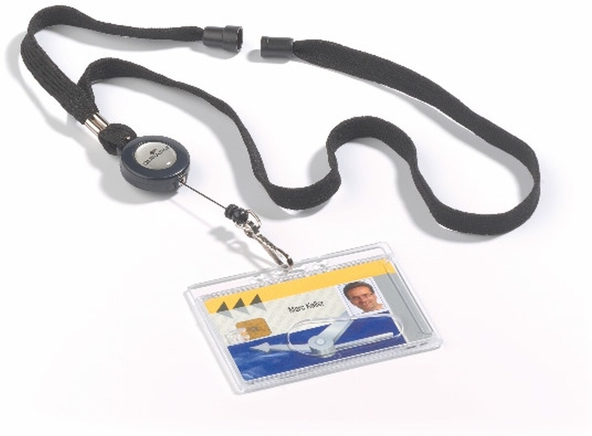DURABLE Ausweishalter mit Aufrollmechanismus - mit Druckknopf - 80cm lang