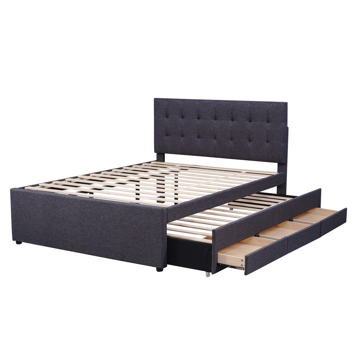 Verstellbares Polsterbett mit Stauraum und Ausziehbett, in Beige ohne Matratze, ideal für Gäste und Familie, stabiles Design, 140x200cm, Grau