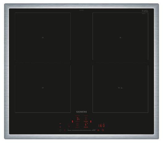 Siemens ED645HQC1E iQ500 Autarkes Induktionskochfeld, Glaskeramik, 58,3 cm breit, 17 Leistungs-Stufen powerBoost, Quick start, Edelstahlrahmen, schwar