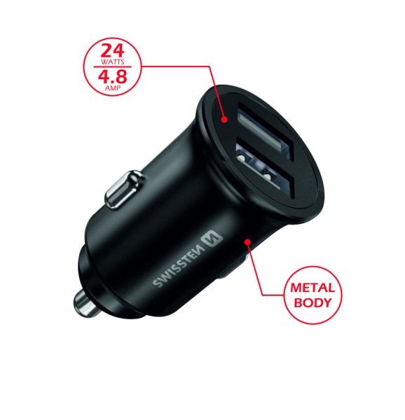 Swissten USB Autoladegerät 2x USB 4,8A METAL (ECO PACK) - Swissten