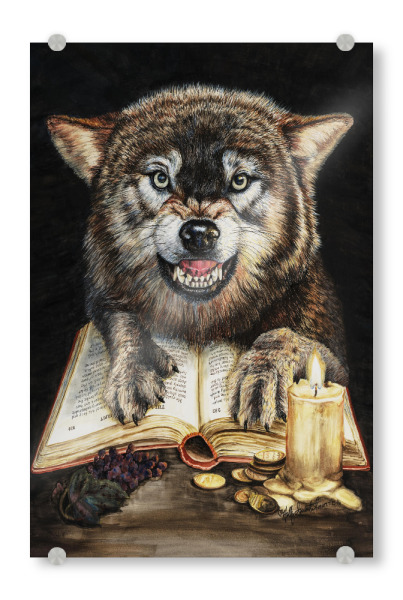 Acrylglasbild "Fiktion im Fleisch" artboxONE - Tiere - Tiere,Hunde,Wolf,Fantasie,Bücher,Zaubersprüche,Gruselig