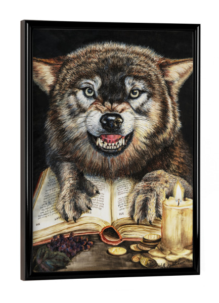 Poster mit schwarzem Rahmen "Fiktion im Fleisch" artboxONE - Tiere - Tiere,Hunde,Wolf,Fantasie,Bücher,Zaubersprüche,Gruselig