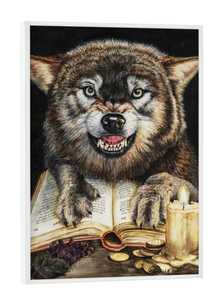 Poster mit weißem Rahmen "Fiktion im Fleisch" artboxONE - Tiere - Tiere,Hunde,Wolf,Fantasie,Bücher,Zaubersprüche,Gruselig