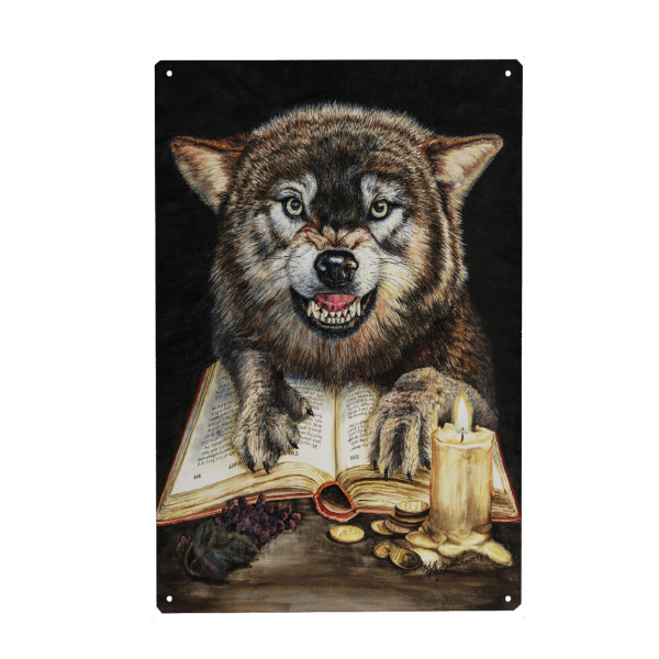 Metall Poster "Fiktion im Fleisch" artboxONE - Tiere - Tiere,Hunde,Wolf,Fantasie,Bücher,Zaubersprüche,Gruselig - Blechschild