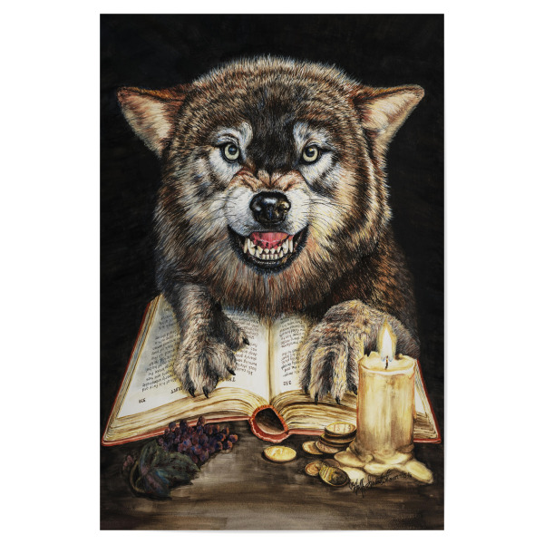 Poster "Fiktion im Fleisch" artboxONE - Tiere - Tiere,Hunde,Wolf,Fantasie,Bücher,Zaubersprüche,Gruselig