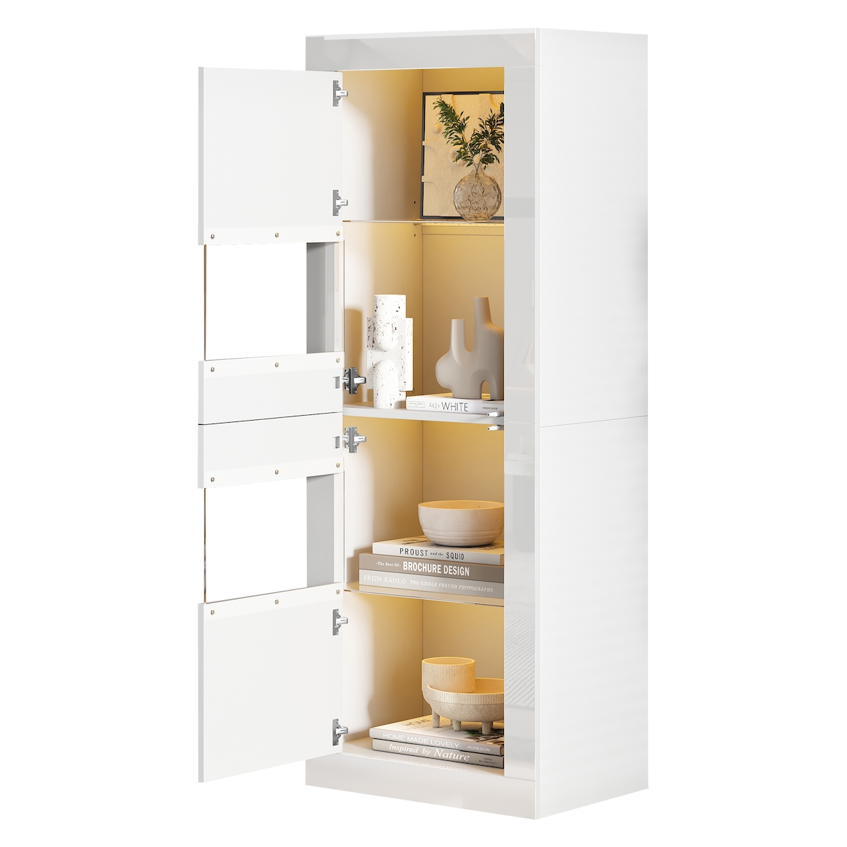 LED Vitrine Sideboard Mit Hochglanzfront Glasböden Fernbedienung Stauraum Acryl Türen Bücherregal Wohnzimmer Weiß 61x42x162cm