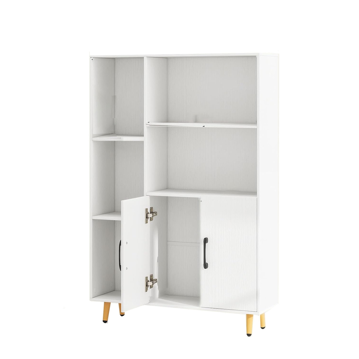COSTWAY Weißes Bücherregal mit Türen und offenen Fächern, Stehendes Regal, Freistehendes, Büroregal, Sideboard, Kommode