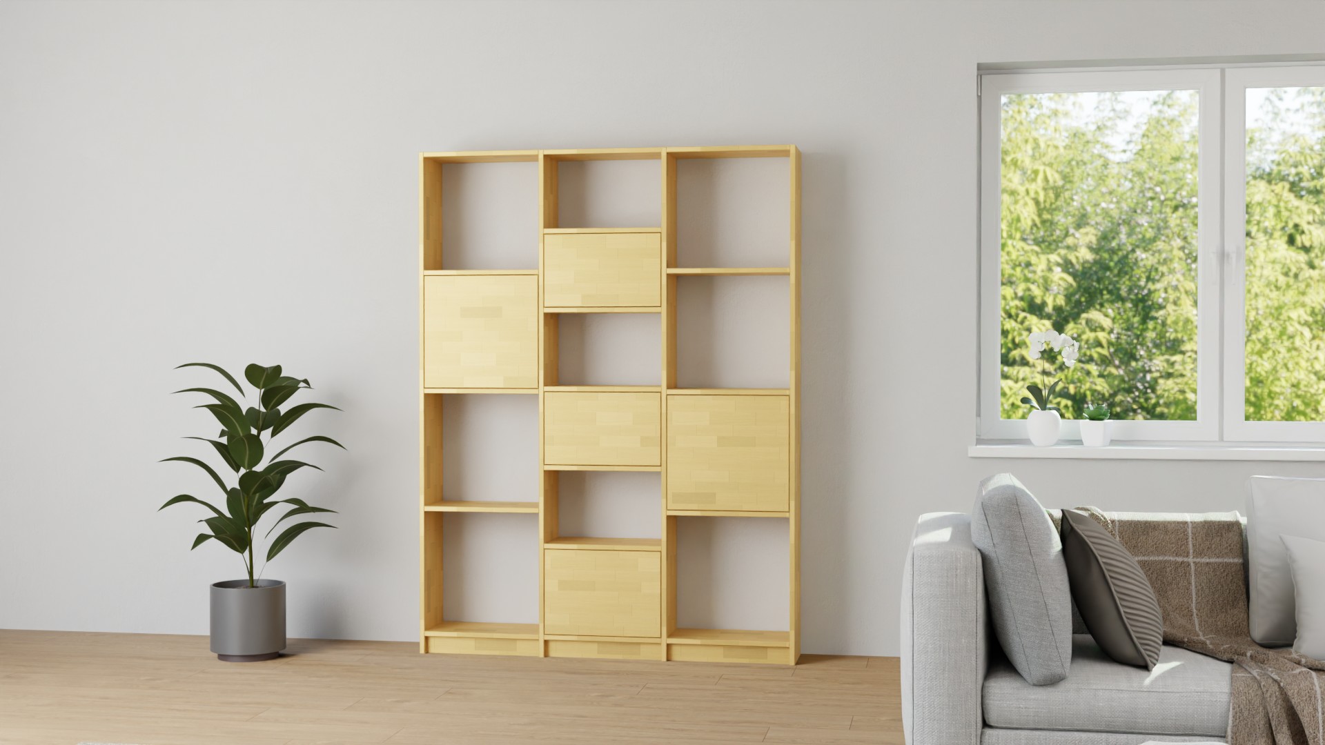 Bücherregal Lubic aus Kernbuche massiv 111x45x205 cm mit 3 Türen und 7 Fächern