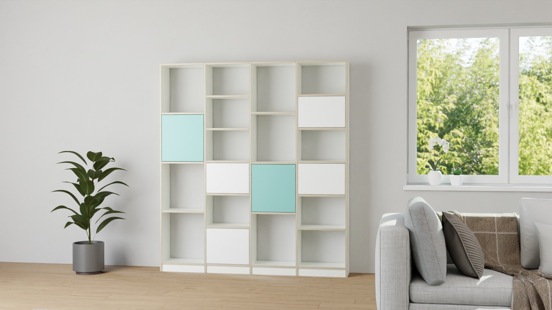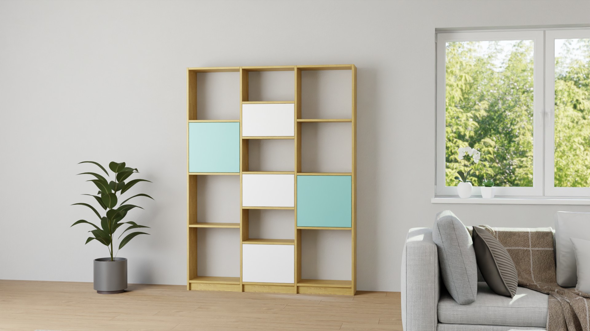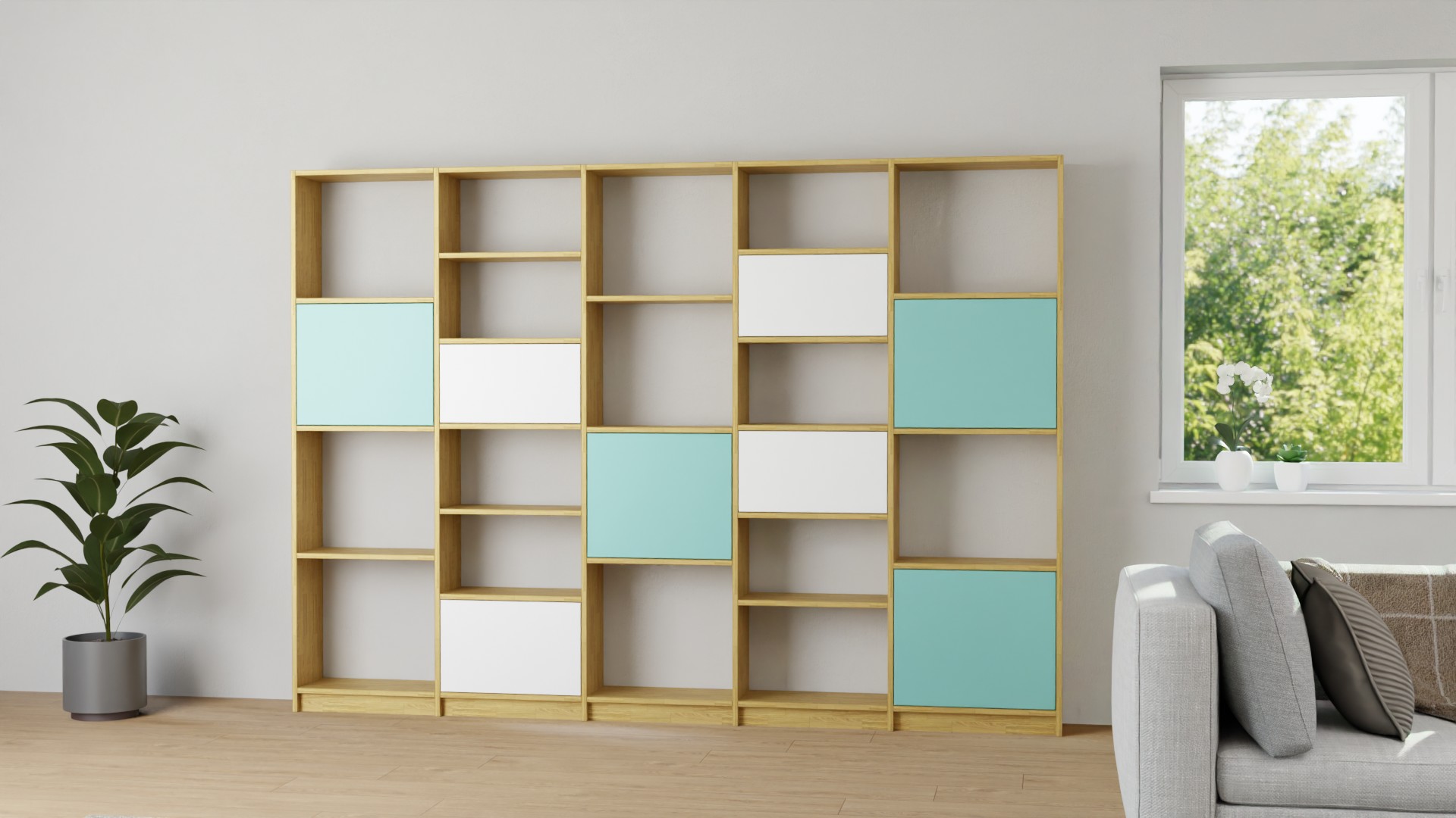 Modernes Bücherregal mit bunten Türen Premium Dekore