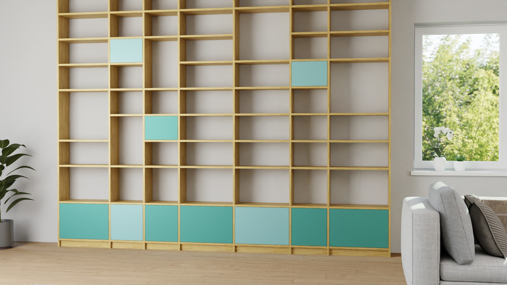 Großes Regal nach Maß - Bücherregal mit Türen MDF Beschichtet