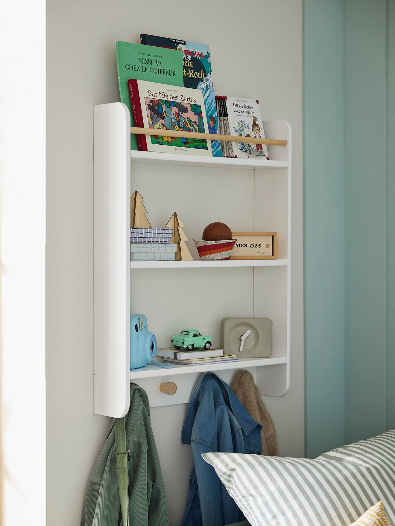 Kinderzimmer Bücherregal mit Garderobe KONFETTI weiß von vertbaudet