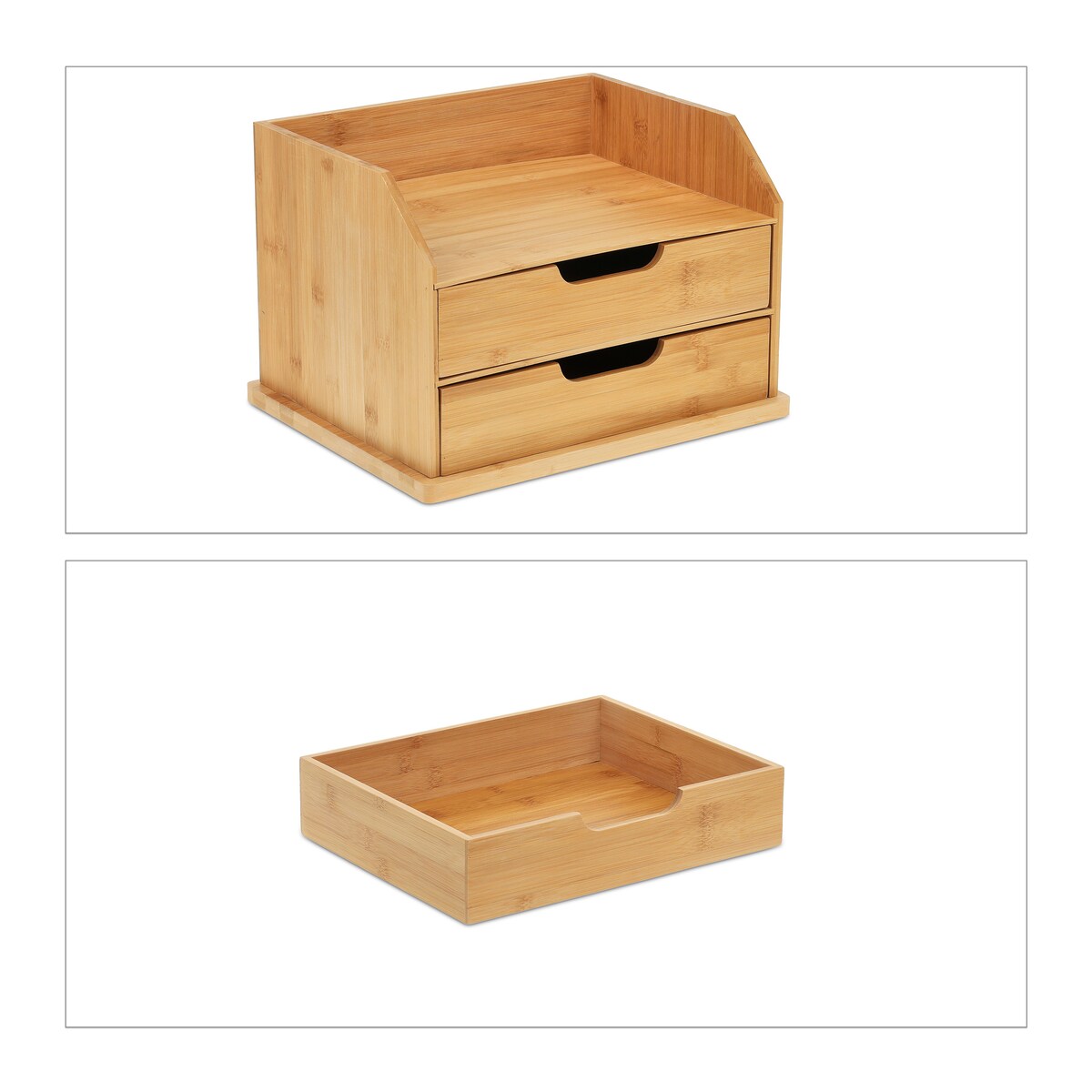 Relaxdays Schreibtisch-Organizer, 2 Schubladen, Büro, Ablage für Briefe & Dokumente, HBT 24 x 36 x 28 cm, Bambus, natur