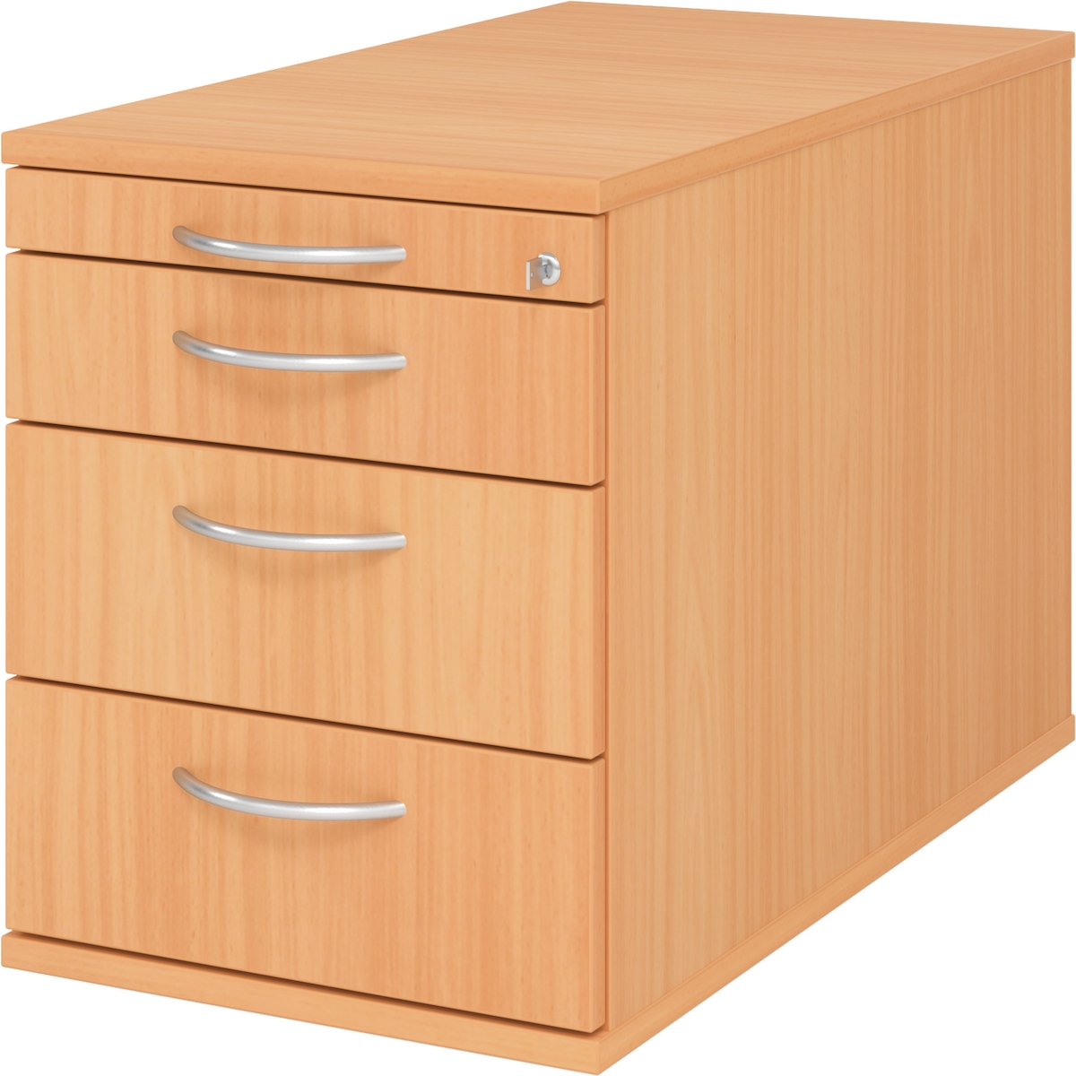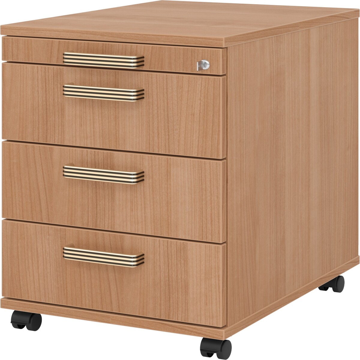 bümö Rollcontainer mit Schubladen, Container abschließbar aus Holz in Buche - Rollwagen für's Büro als Schreibtisch Unterschrank, Bürocontainer od.
