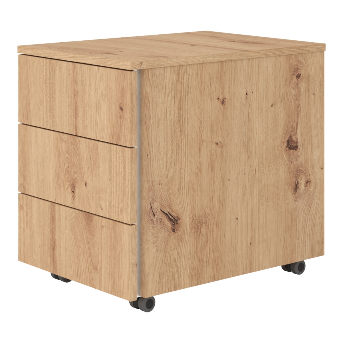 Moderner Büro Rollcontainer in Buche, 60 cm, mit 3 Schubladen, elegante Aluminiumgriffe, praktische Rollen für leichte Beweglichkeit | Kadima Design