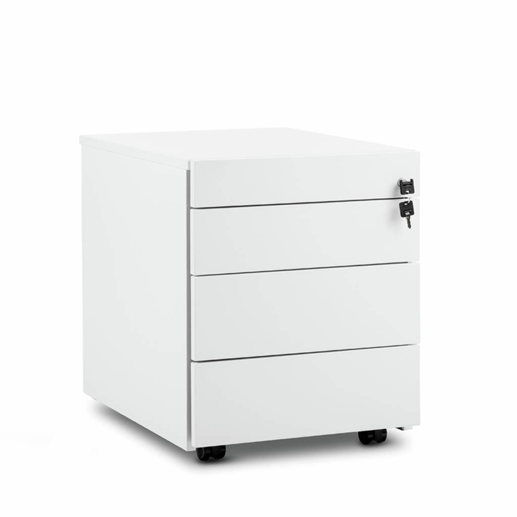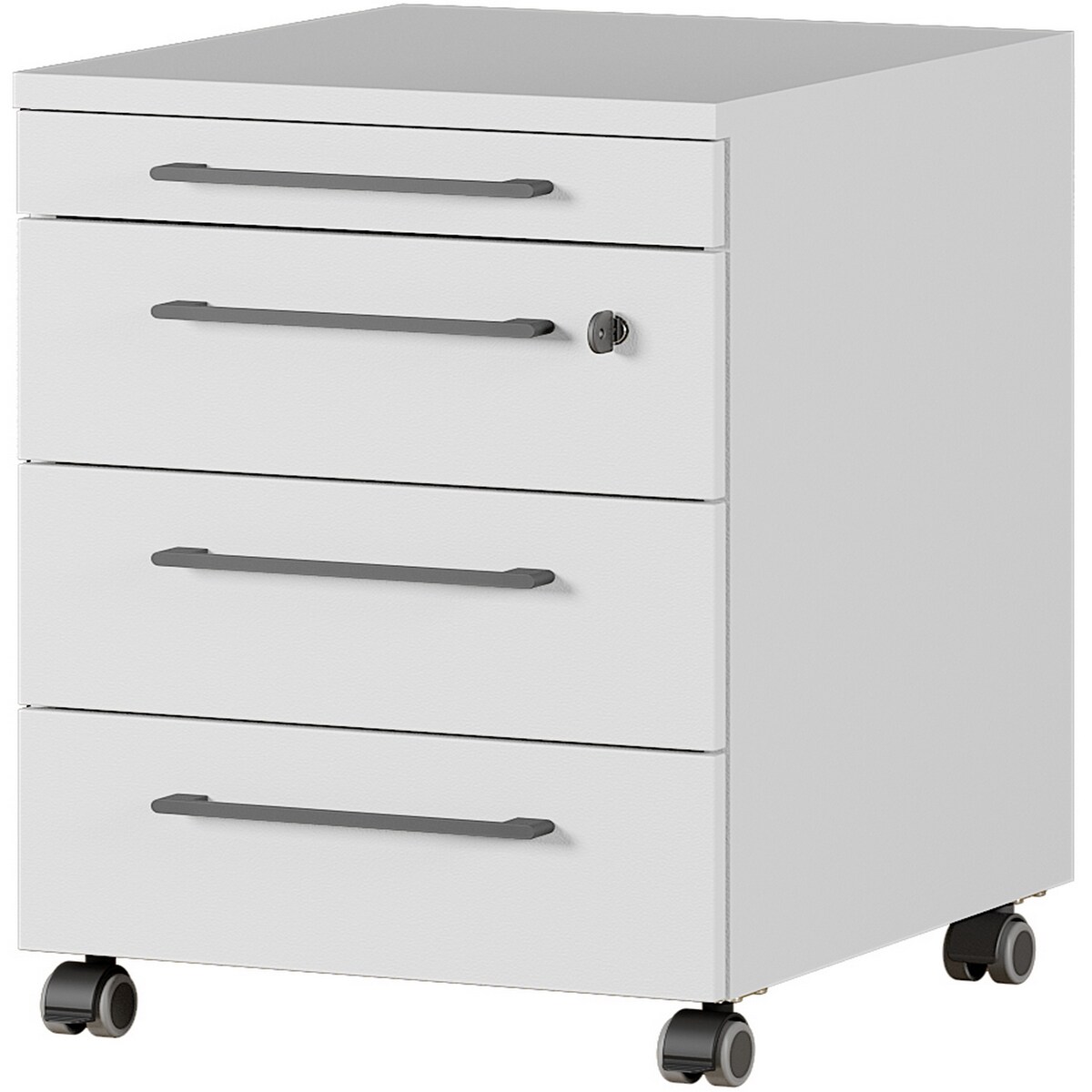 VERSEE Büro-Rollcontainer, Metall, 40 cm, 4 Schubladen, Weiß