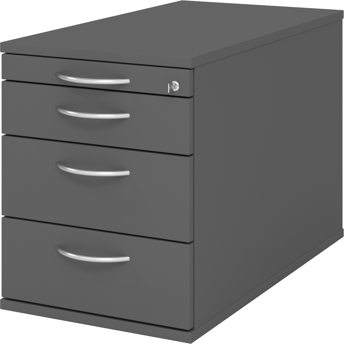 bümö Rollcontainer mit Schubladen, Container abschließbar aus Holz in graphit - Rollwagen für's Büro als Schreibtisch Unterschrank, Bürocontainer od.