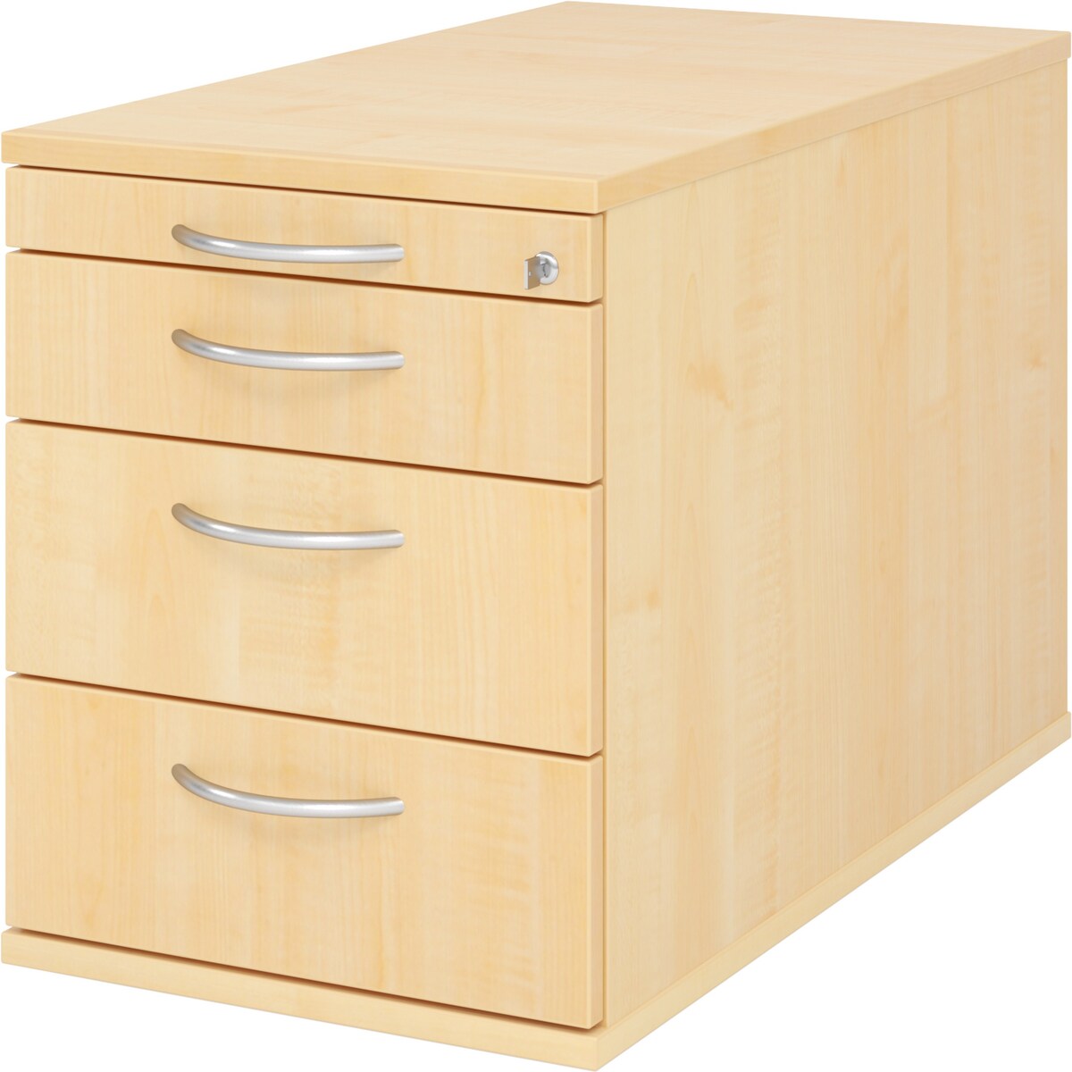 bümö basic Rollcontainer mit Schubladen, Container aus Holz in Ahorn - Rollwagen für's Büro als Schreibtisch Unterschrank, Bürocontainer od.