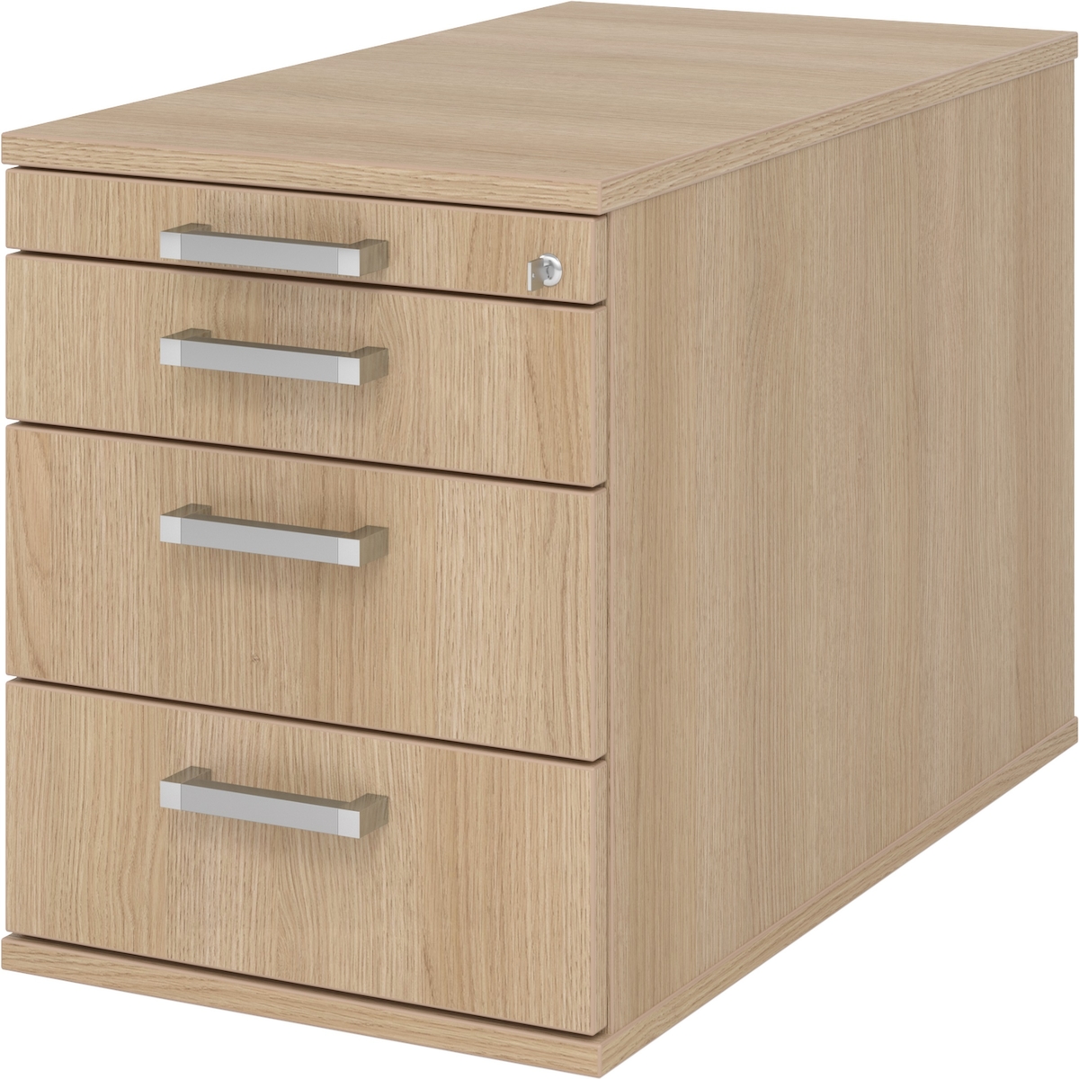 bümö Rollcontainer mit Schubladen, Container abschließbar aus Holz in Eiche - Rollwagen für's Büro als Schreibtisch Unterschrank, Bürocontainer od.