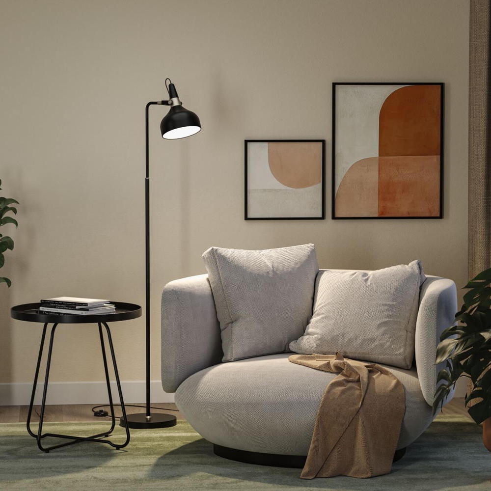 Moderne Stehlampe Mehrzweck Stylish Minimalist Stoff Runde Lampenschirm Stehlampe für Wohnzimmer Schlafzimmer Büro Schwarz