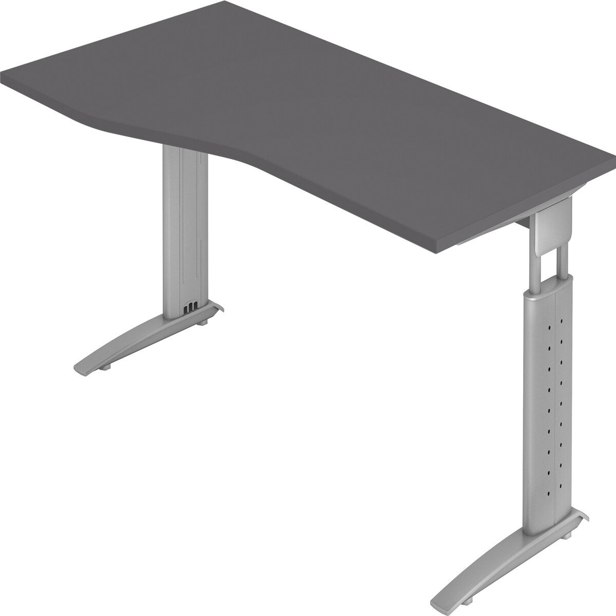 bümö höhenverstellbarer Schreibtisch O-Serie 160x80 cm in Graphit, Gestell in Silber - PC Tisch für's Büro manuell höhenverstellbar, Computertisch