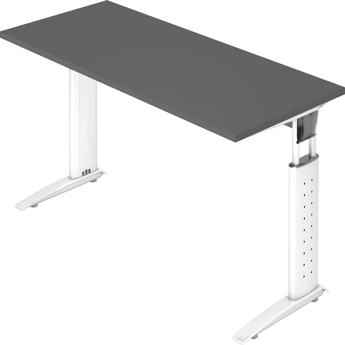 bümö höhenverstellbarer Schreibtisch U-Serie 180x80 graphit, Gestell in weiß - großer PC Tisch für's Büro manuell höhenverstellbar, Computertisch