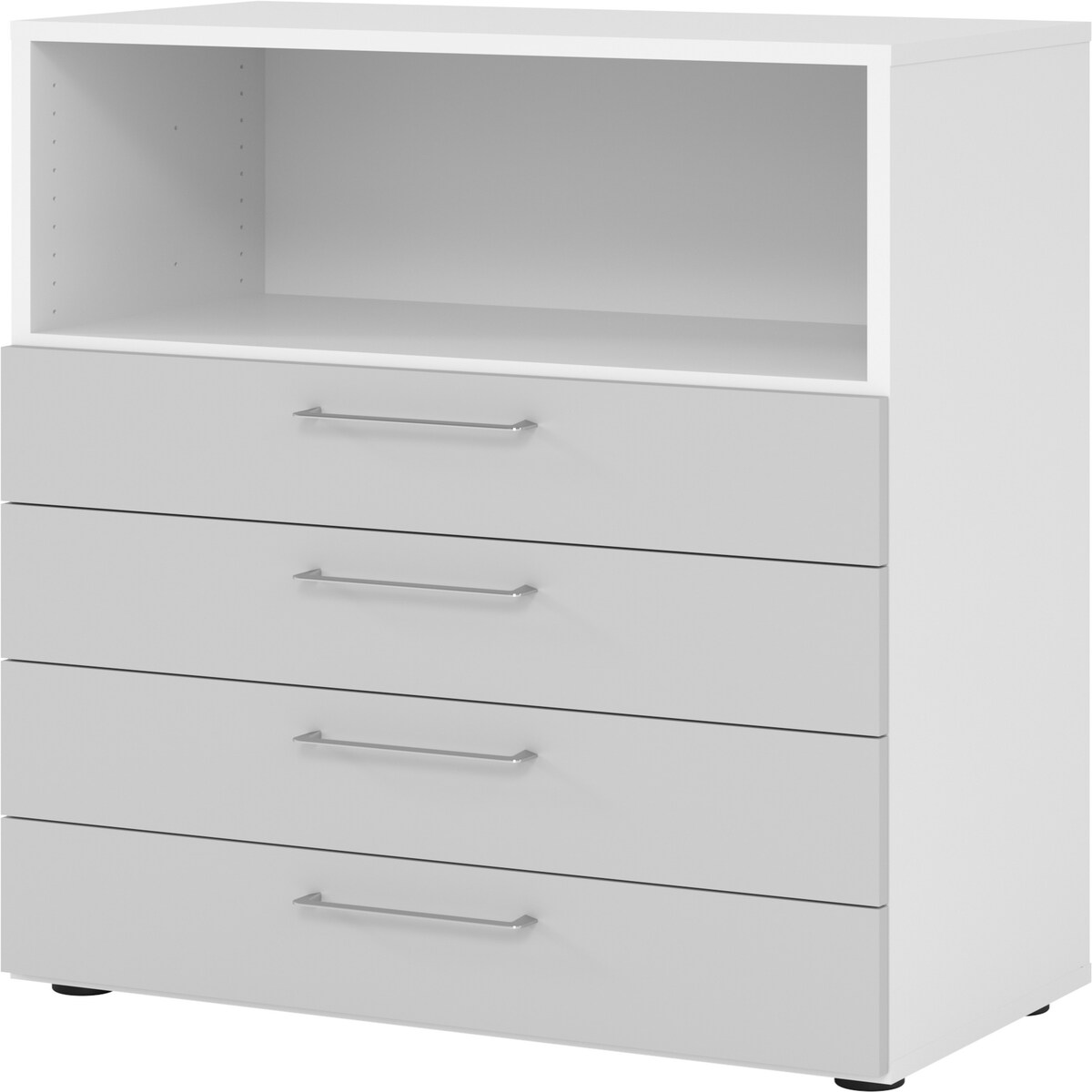 bümö smart Schubladenschrank, Büroschrank 80cm breit in Weiß/Grau mit 4 Schüben & 1 Regalfach - Bürocontainer aus Holz, Container mit Metallgriffen &