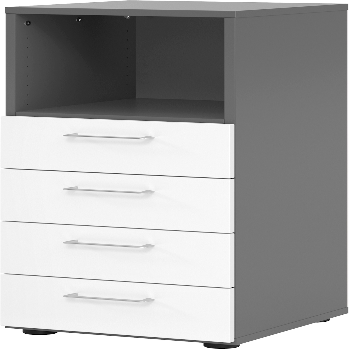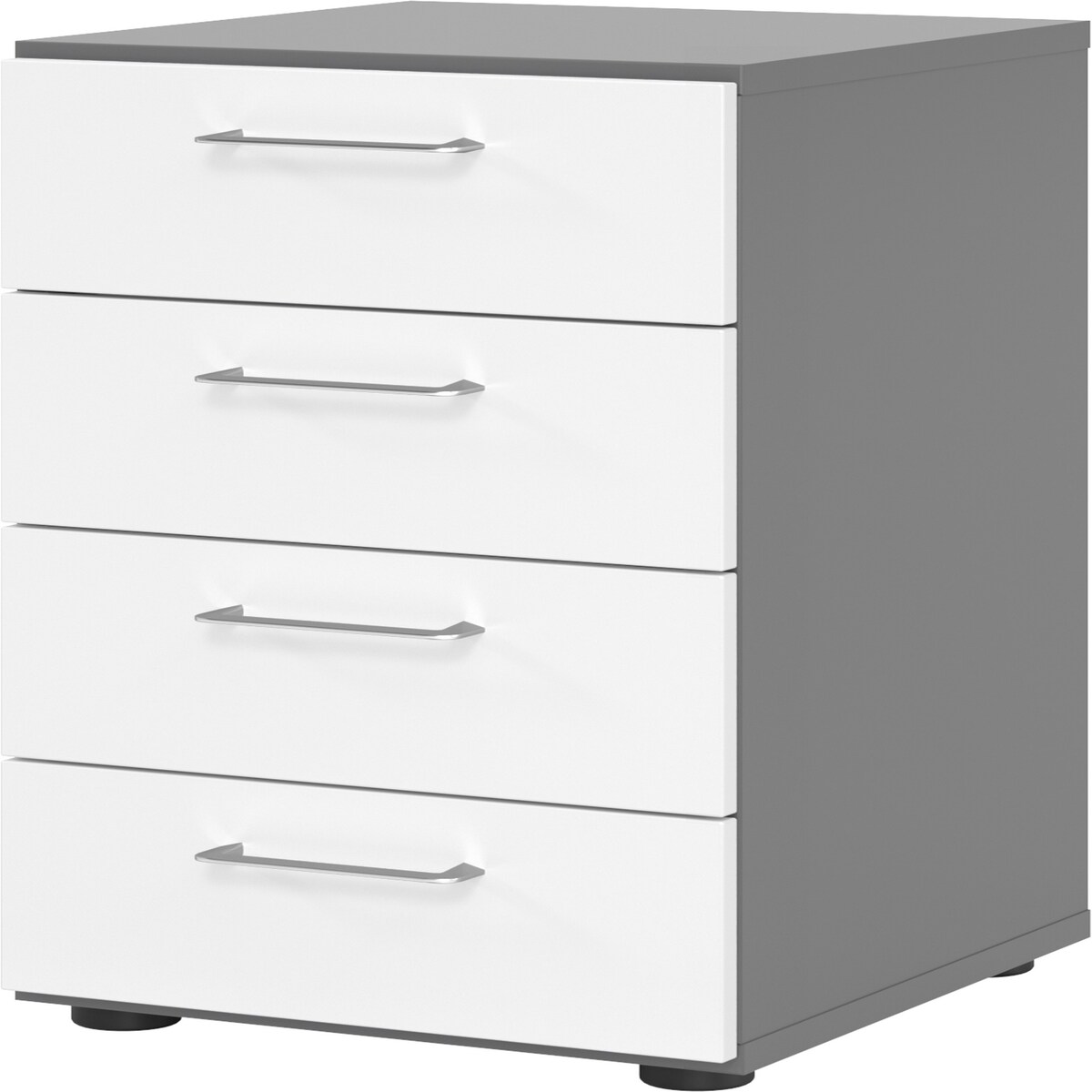 bümö smart Schubladenschrank, Büroschrank in Graphit/Weiß mit 4 Schüben - Bürocontainer aus Holz, Container mit Metallgriffen & Soft-Stop Schubladen