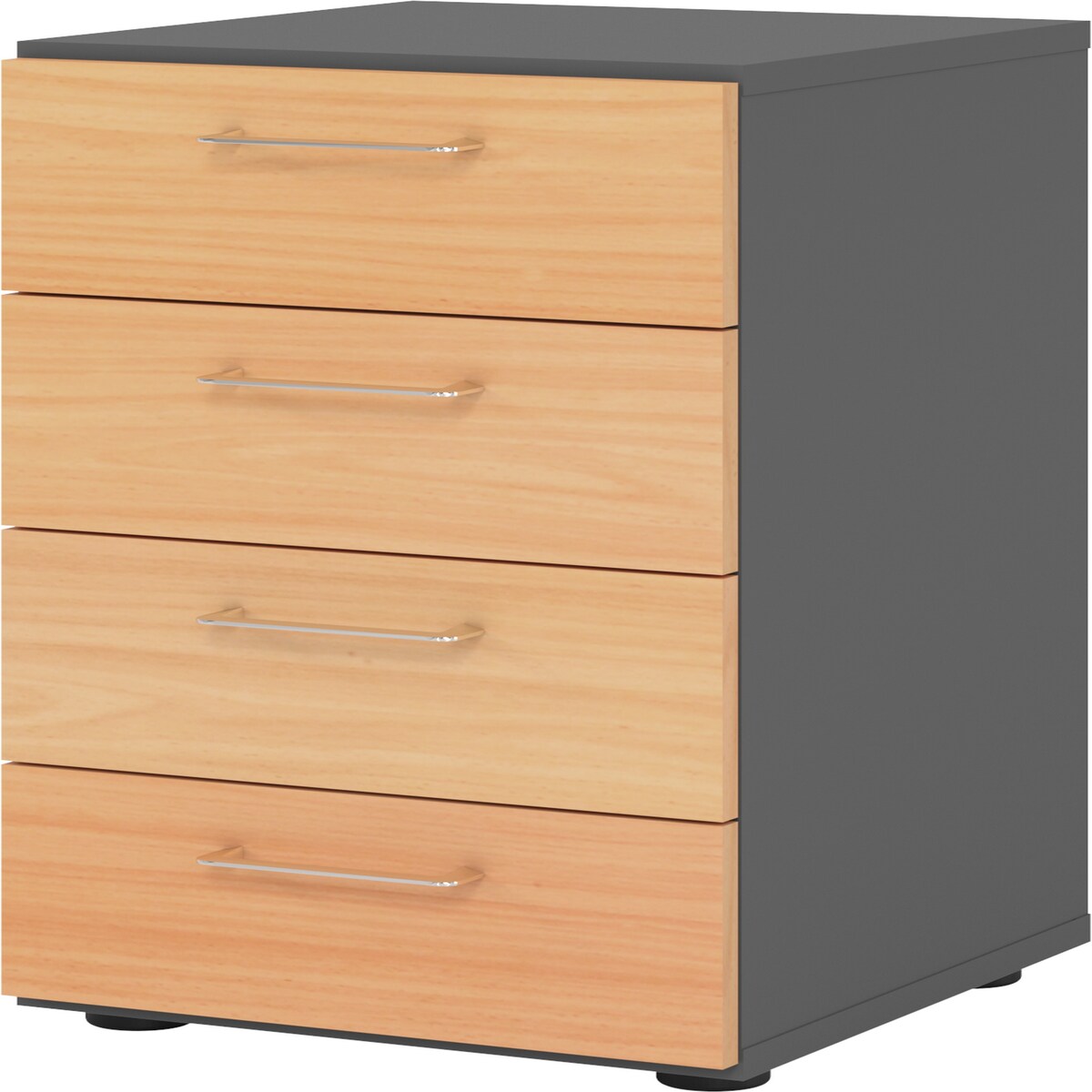 bümö smart Schubladenschrank, Büroschrank in Graphit/Buche mit 4 Schüben - Bürocontainer aus Holz, Container mit Metallgriffen & Soft-Stop Schubladen