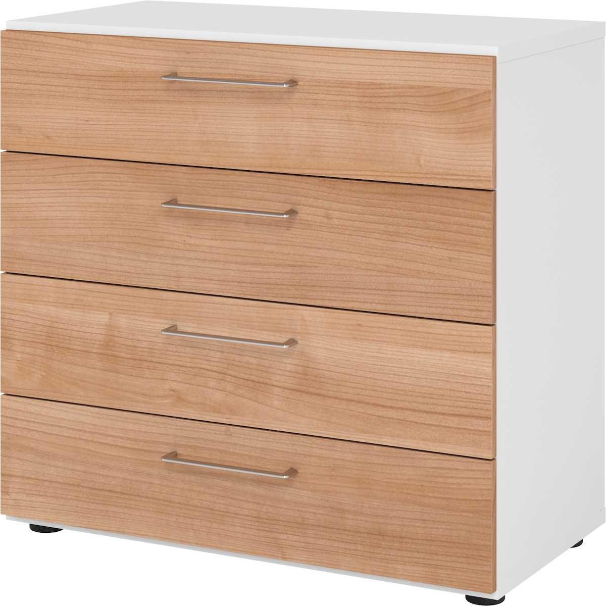 bümö smart Schubladenschrank, Büroschrank 80cm breit in Weiß/Nussbaum mit 4 Schüben - Bürocontainer aus Holz, Container mit Metallgriffen & Soft-Stop