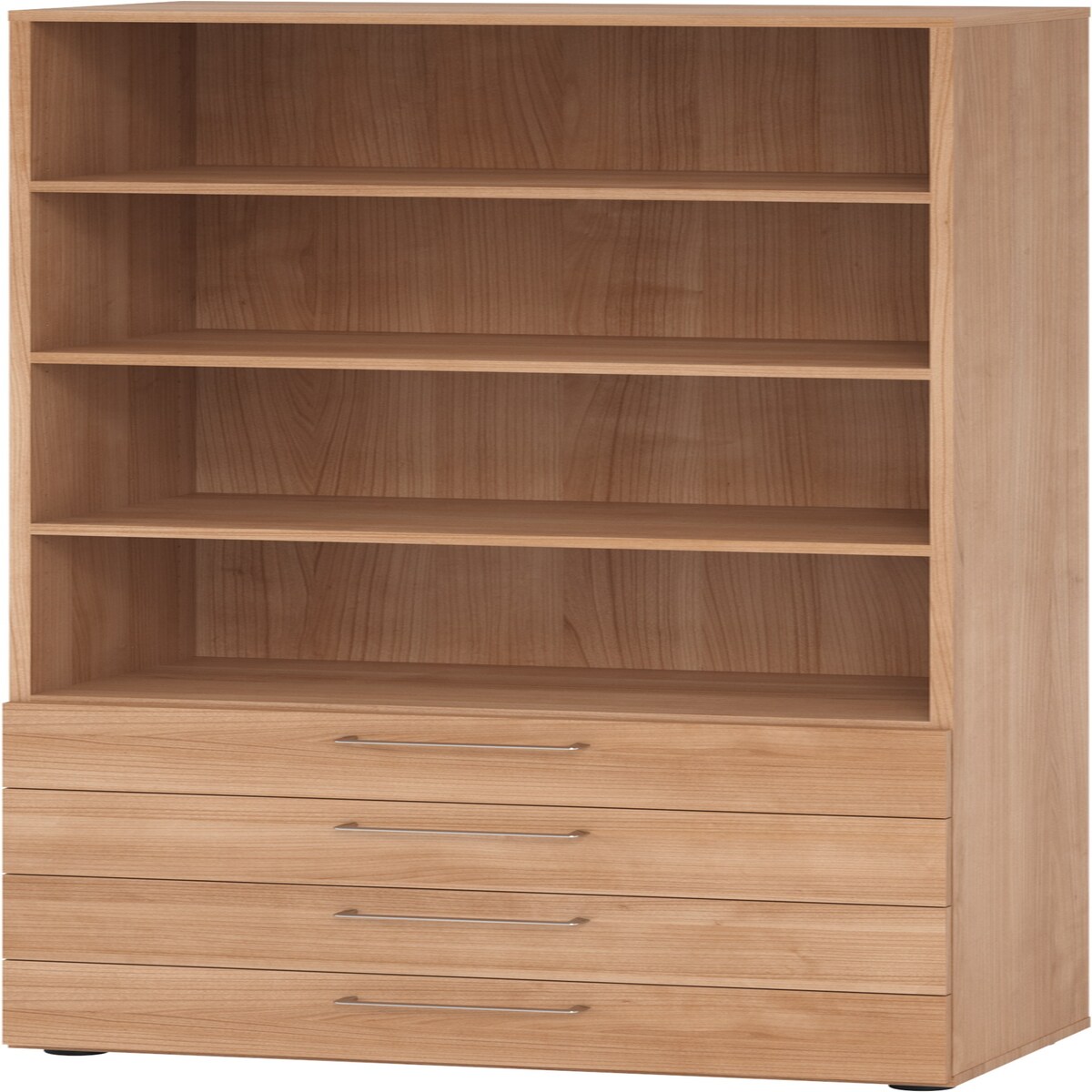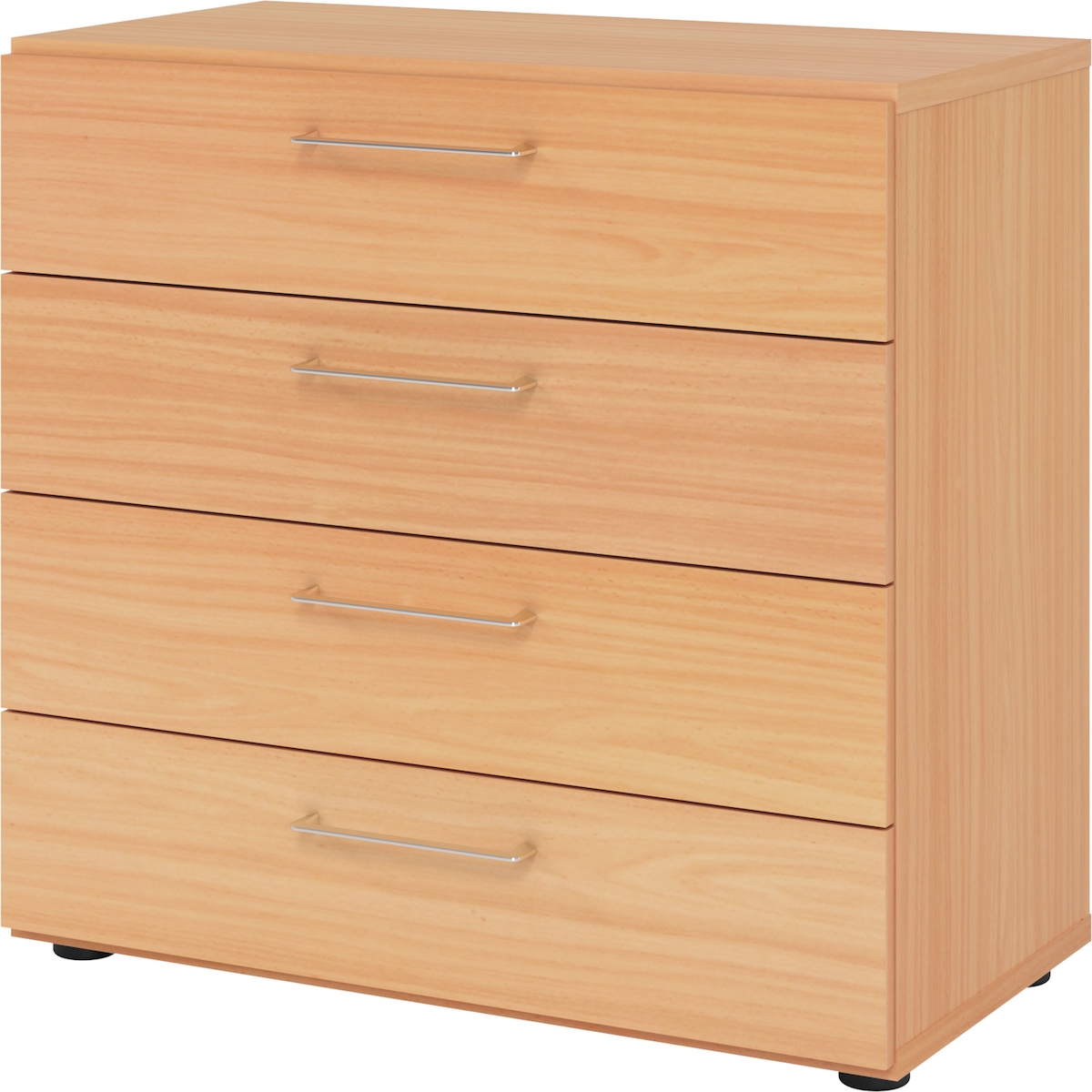 bümö smart Schubladenschrank, Büroschrank 80cm breit in Buche mit 4 Schüben - Bürocontainer aus Holz, Container mit Metallgriffen & Soft-Stop
