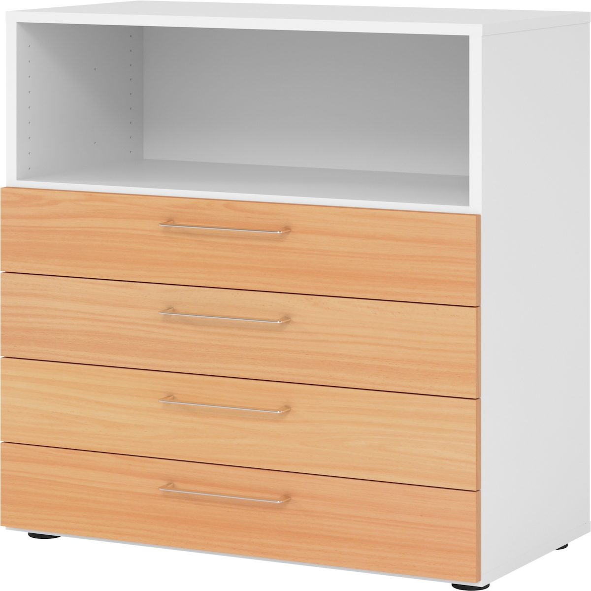 bümö smart Schubladenschrank, Büroschrank 80cm breit in Weiß/Buche mit 4 Schüben & 1 Regalfach - Bürocontainer aus Holz, Container mit Metallgriffen