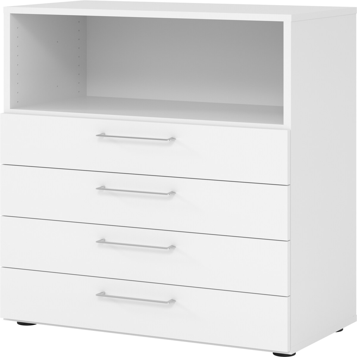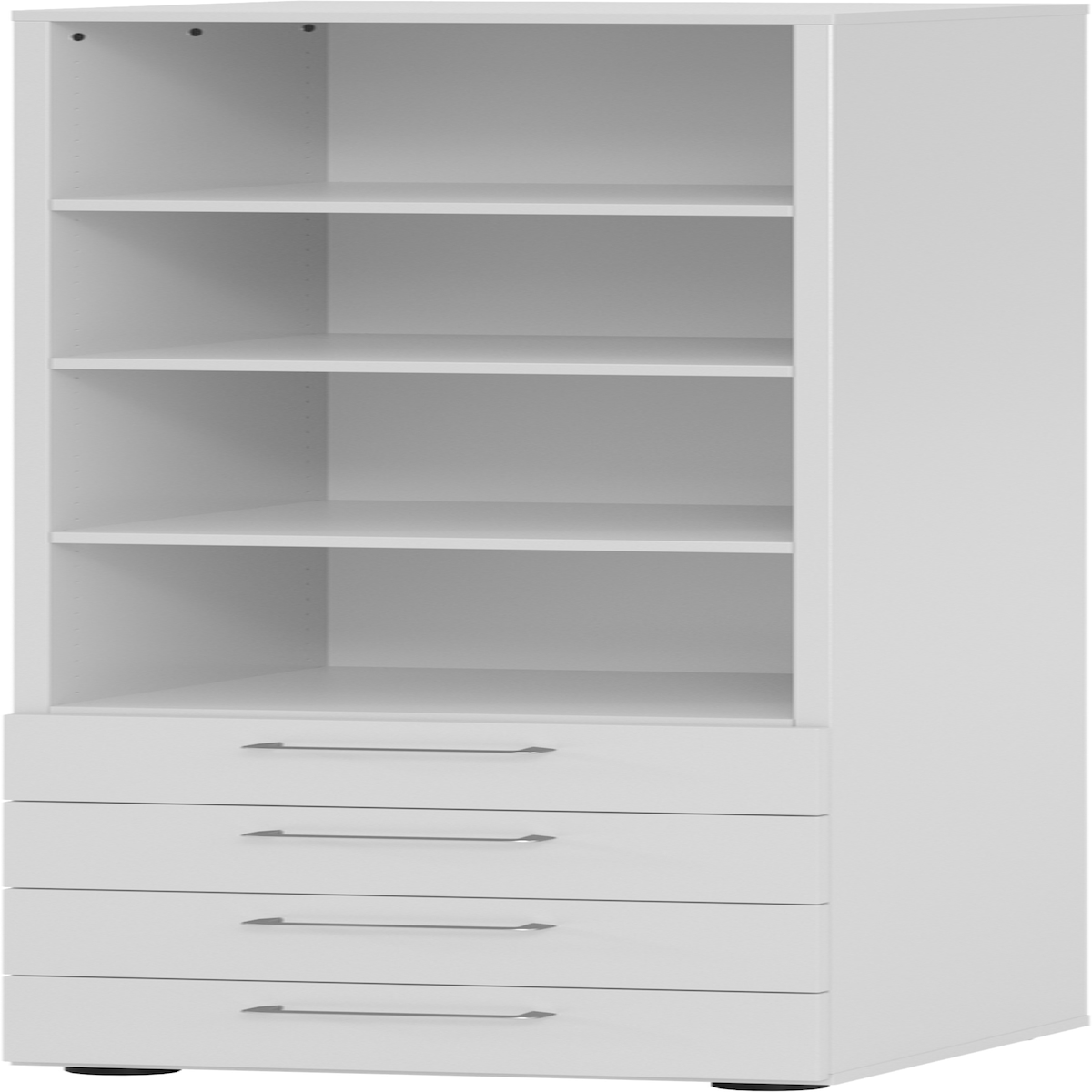 bümö smart Schubladenschrank, Büroschrank 80cm breit in weiß mit 4 Schüben & 1 Regalfach - Bürocontainer aus Holz, Container mit Metallgriffen &