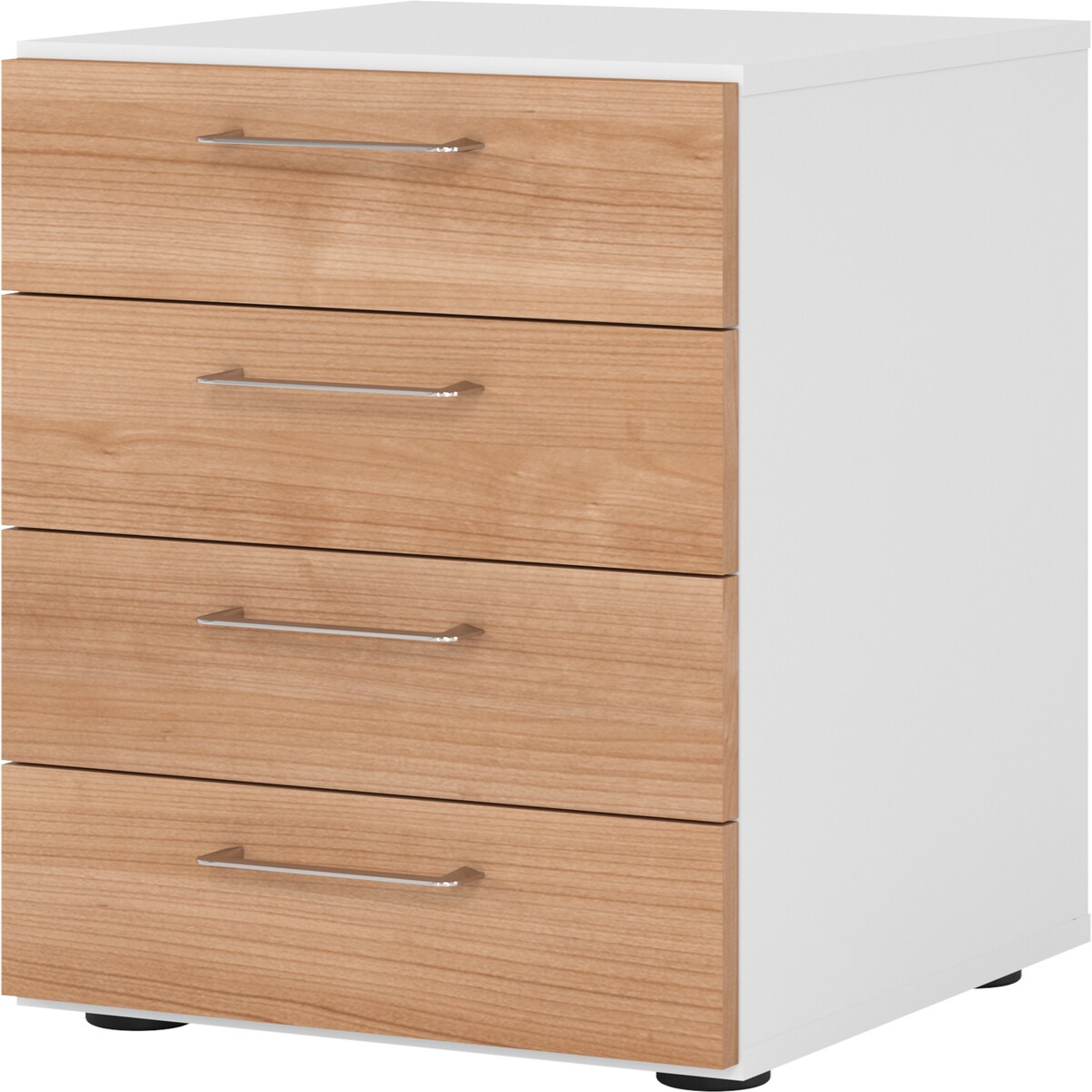bümö smart Schubladenschrank, Büroschrank in Weiß/Nussbaum mit 4 Schüben - Bürocontainer aus Holz, Container mit Metallgriffen & Soft-Stop Schubladen