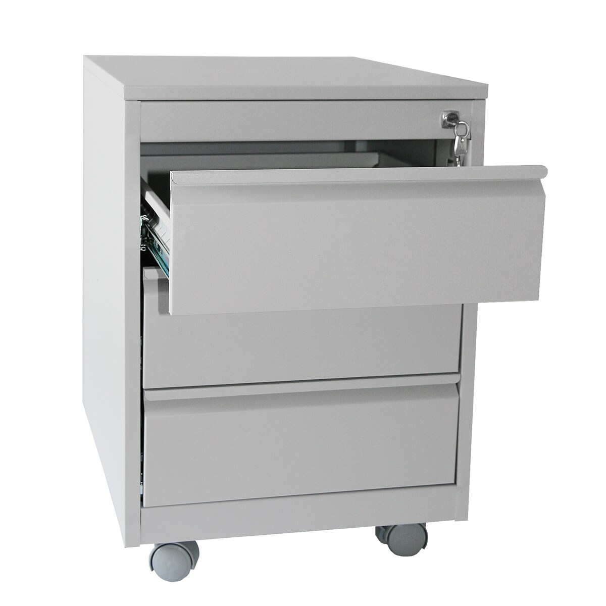 STEELBOXX Büro Rollcontainer Bürocontainer 3 Schubladen Lichtgrau Maße: 55x40x59cm 505150X