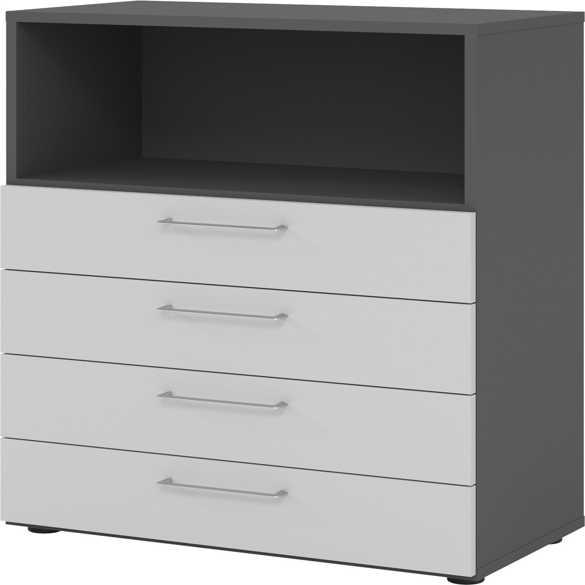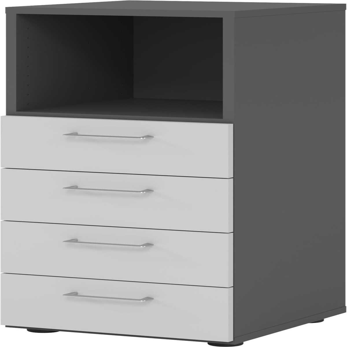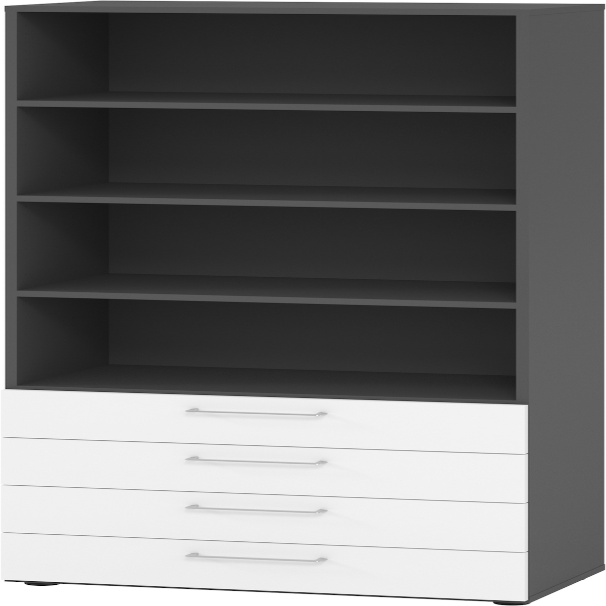 bümö smart Schubladenschrank, Büroschrank in Graphit/Weiß mit 4 Schüben & 1 Regalfach - Bürocontainer aus Holz, Container mit Metallgriffen &