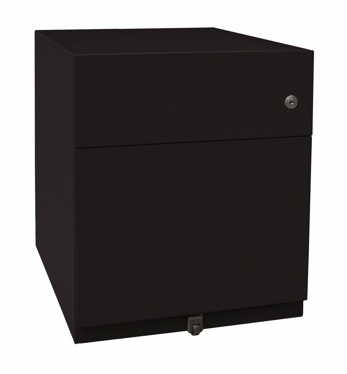 BISLEY OBA Rollcontainer mit 2 Schüben aus Metall abschließbar in schwarz - Bürocontainer mit Universalschublade & Hängeregistratur, Container mit
