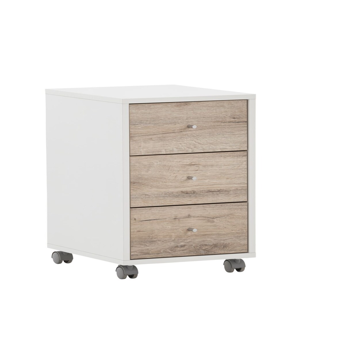 Möbelpartner Rollcontainer Pigeon | HxBxT 59,7x32,6x39cm | 3 Schubladen | Weiß/Eiche | Bürocontainer mit Frontgriffleiste von PROREGAL
