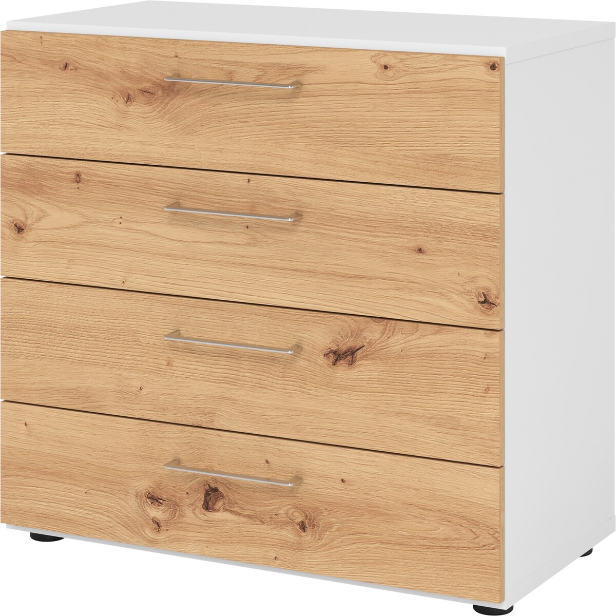 bümö smart Schubladenschrank, Büroschrank 80cm breit in Weiß/Asteiche mit 4 Schüben - Bürocontainer aus Holz, Container mit Metallgriffen & Soft-Stop