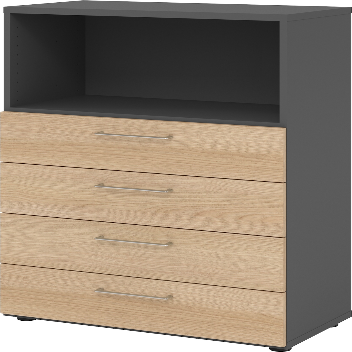 bümö smart Schubladenschrank, Büroschrank 80cm breit in Graphit/Eiche mit 4 Schüben & 1 Regalfach - Bürocontainer aus Holz, Container mit