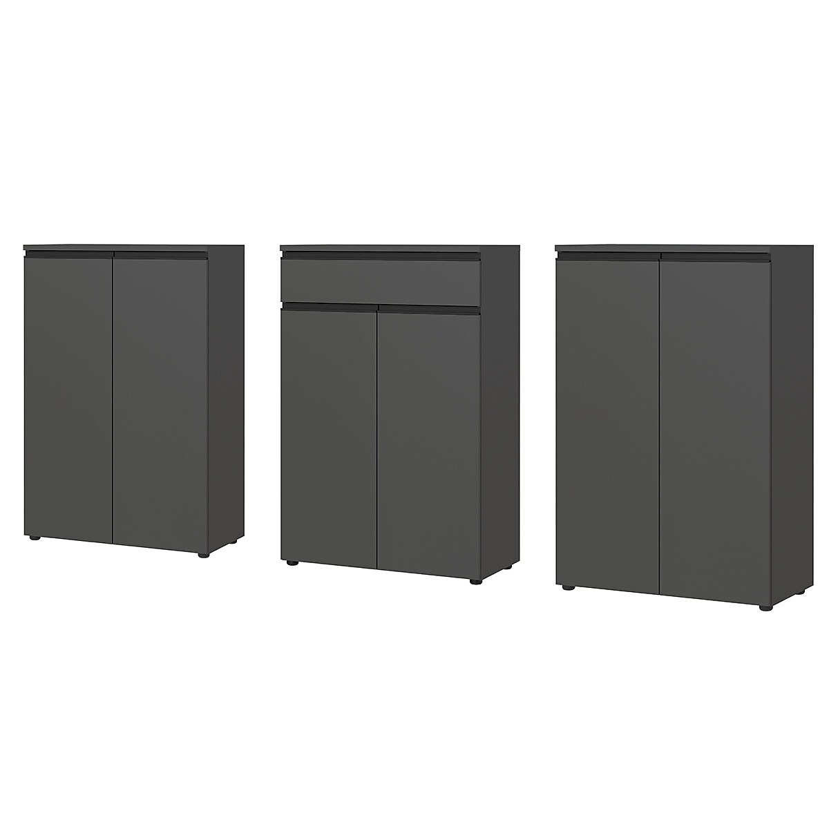 Aktenschrank 2-türig Soft-Close | 3 Ordnerhöhen | Büroschrank Graphit matt | Mehrzweckschrank | Made in Germany | Büromöbel `Stuttgart` Kadima Design