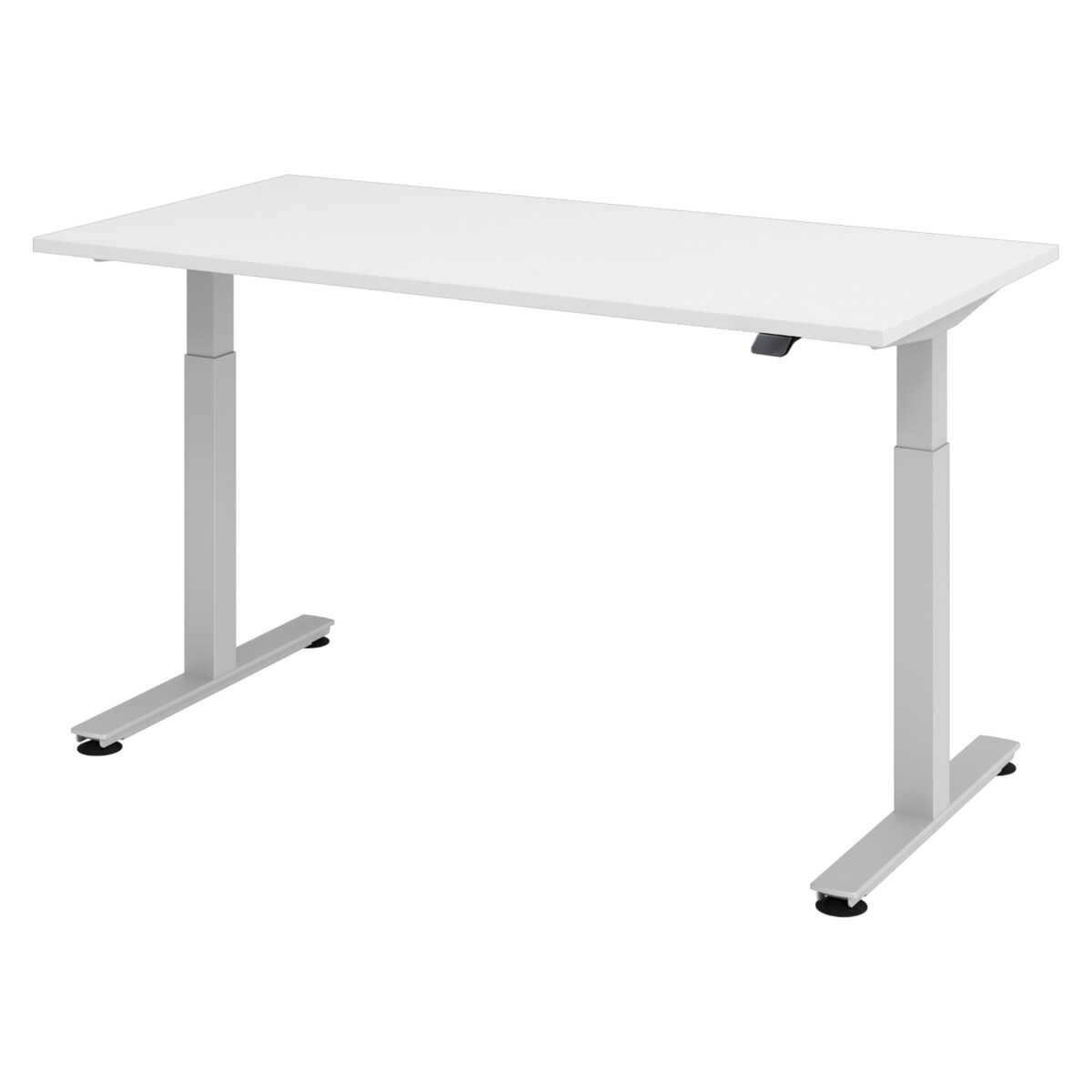 bümö elektrisch höhenverstellbarer Schreibtisch weiß 160x80 cm, Gestell: Silber - Büroschreibtisch höhenverstellbar elektrisch, elektrischer